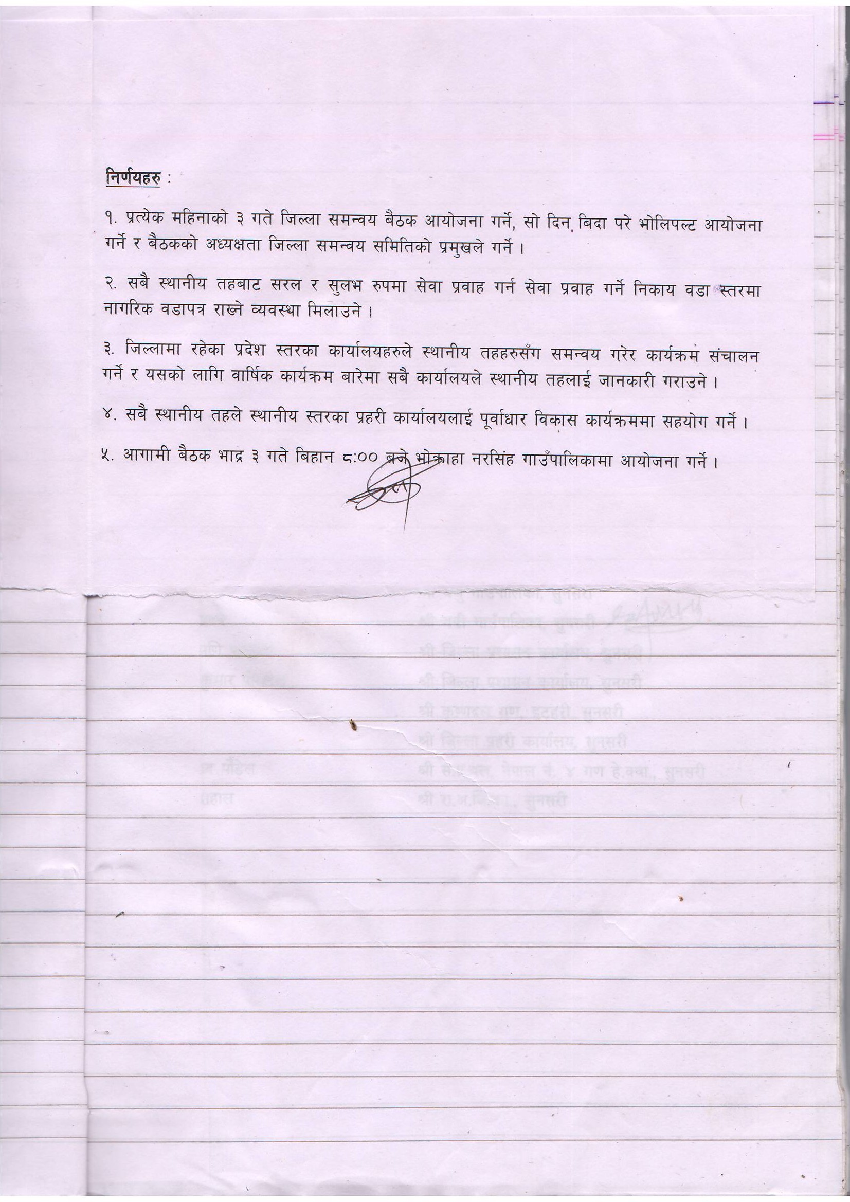 जिल्ला समन्वय बैठकका निर्णयहरु