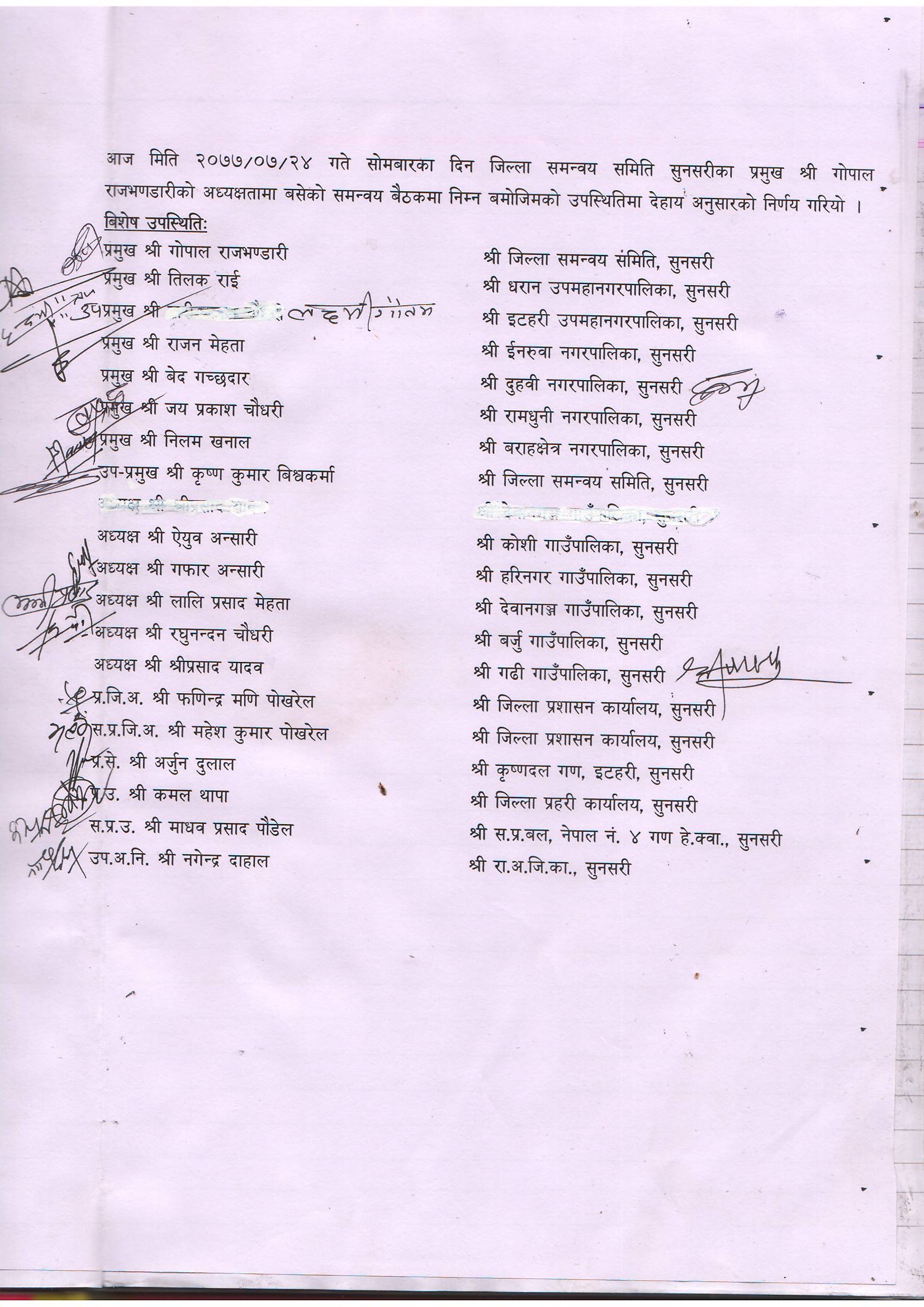 जिल्ला विपद् व्यवस्थापन समितिको बैठक निर्णय । २०८१।०४।२८