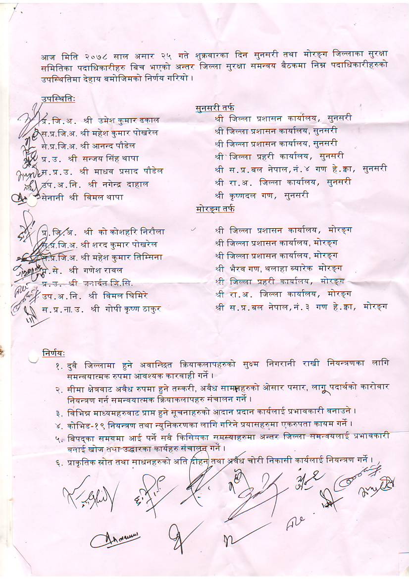जिल्ला प्रशासन कार्यालय सुनसरीबाट मिति २०७८।१०।१७ मा जारी आदेश