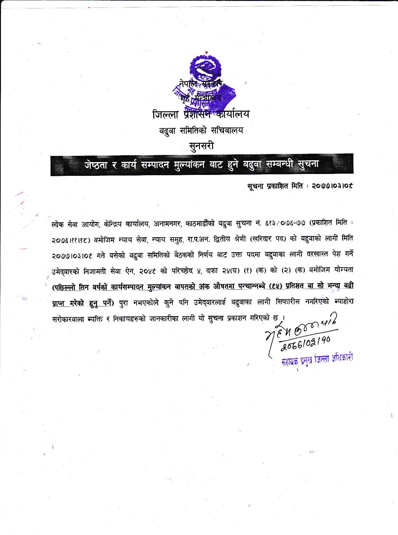 जेष्ठ र कार्य सम्पादन मुल्याङ्कन बाट हुने बढुवा सम्बन्धी सूचना ।