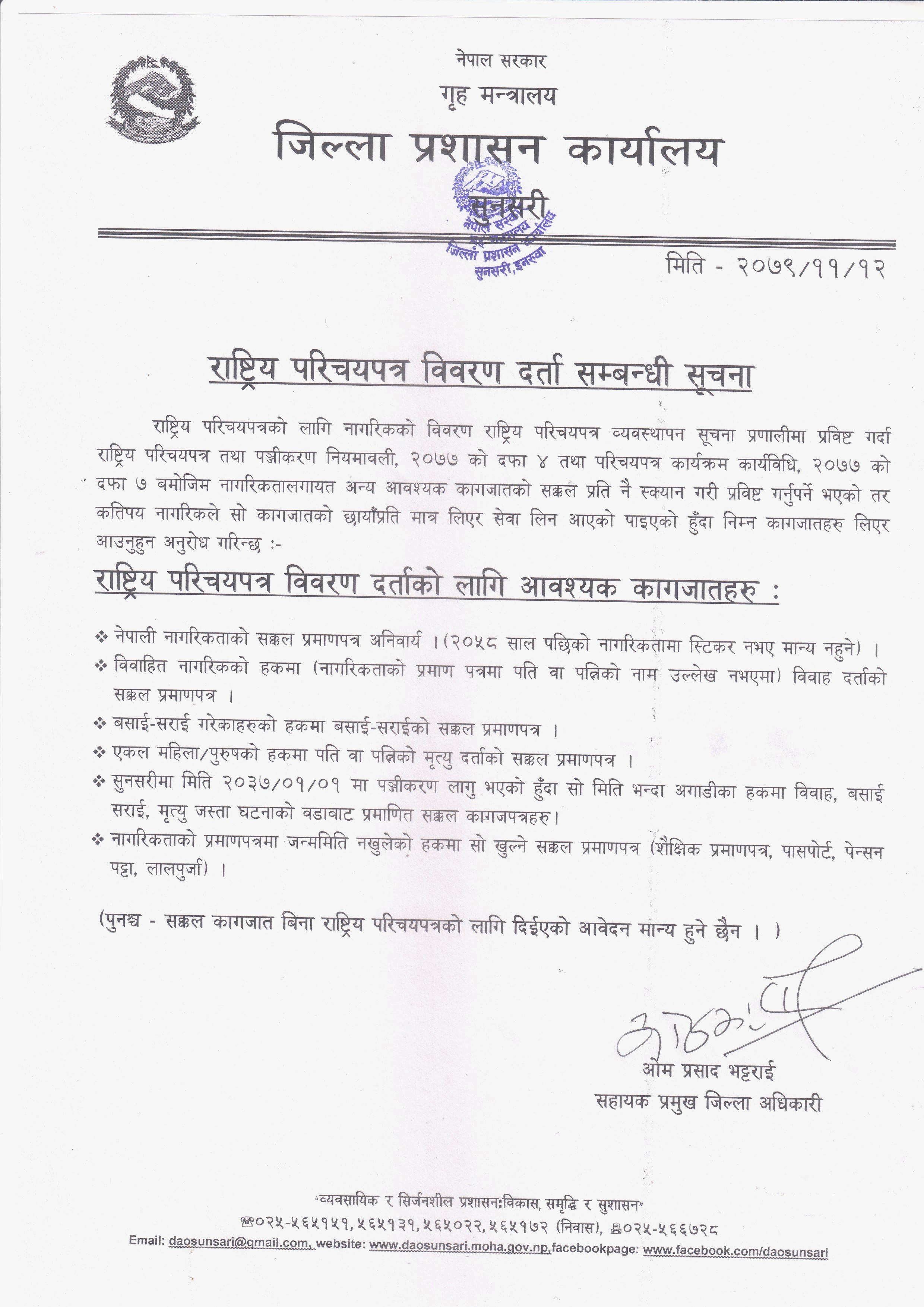 राष्ट्रिय परिचयपत्र विवरण दर्ता सम्बन्धी सूचना ।