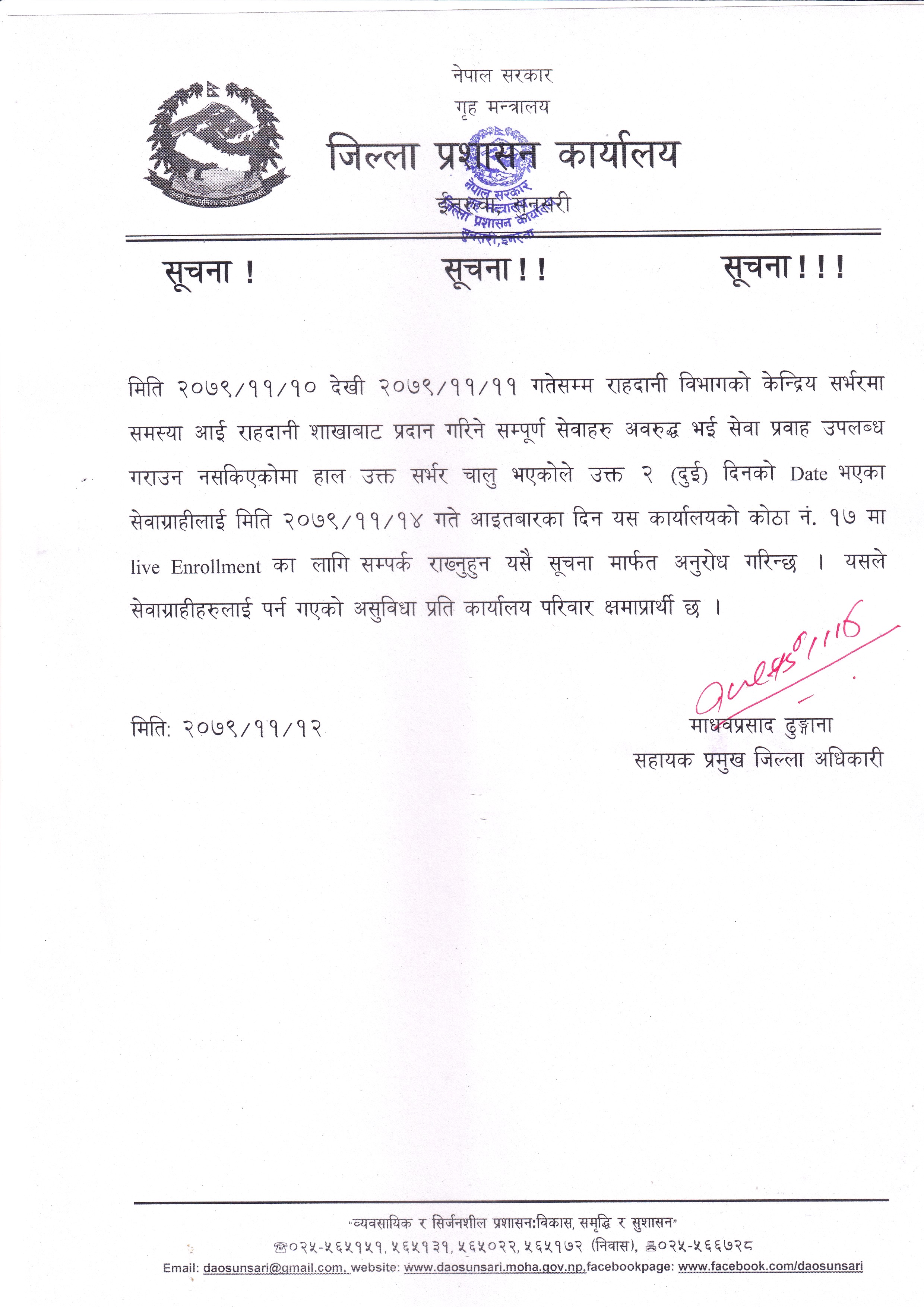 © सर्वाधिकार सुरक्षित जिल्ला प्रशासन कार्यालय, सुनसरी