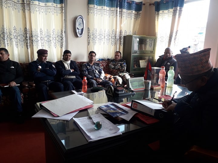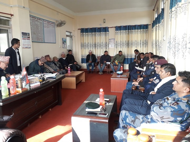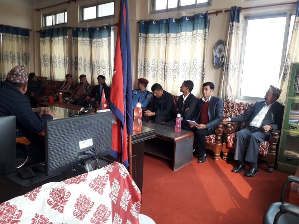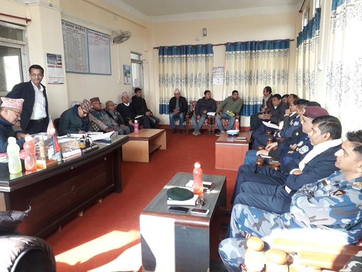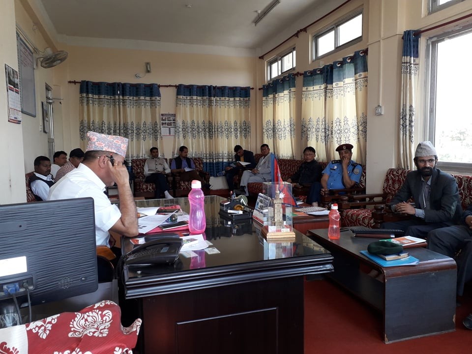 मिति २०७६/०९/२४ गते प्र.जि.अ. श्री राजेश पाैडेलकाे अध्यक्षातामा बसेकाे राजमार्ग (सडक) अवराेध हटाउने जिल्ला समन्वय समितिकाे बैठक