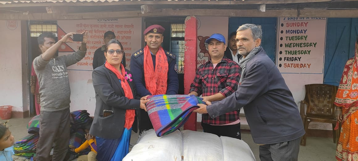 इनरुवा नगरपालिका वडा नं. ३ स्थित श्री देवकाेटा आधारभूत विद्यालयमा अध्ययनरत अति बिपन्न परिवारका छात्र, छात्रालाई चिसाेवाट जाेगिनकालागि प्रमुख जिल्ला अधिकारी तथा प्रहरी उपरिक्षकवाट कम्बल बितरण कार्यक्रम ।