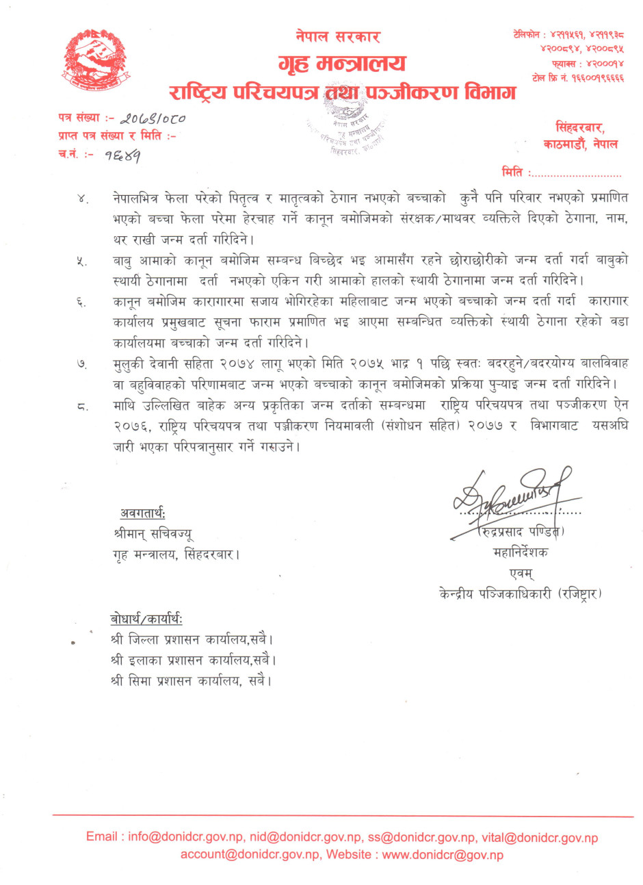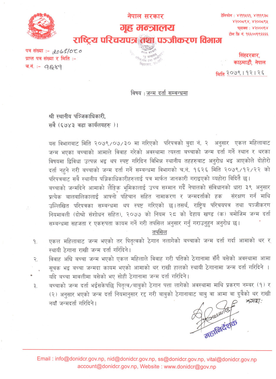 जन्म दर्ता सम्बन्धमा ।