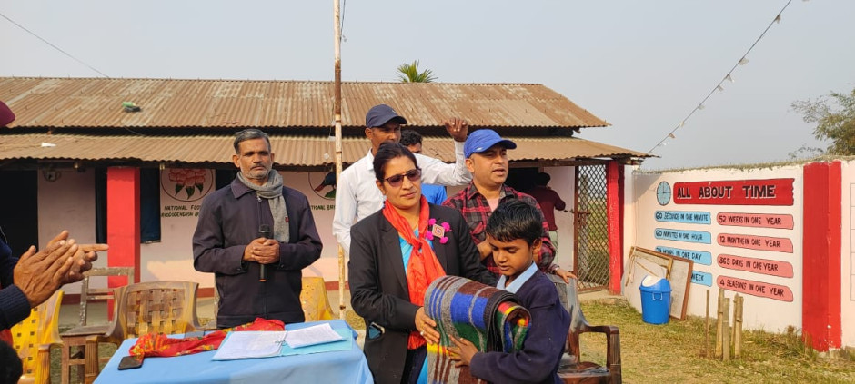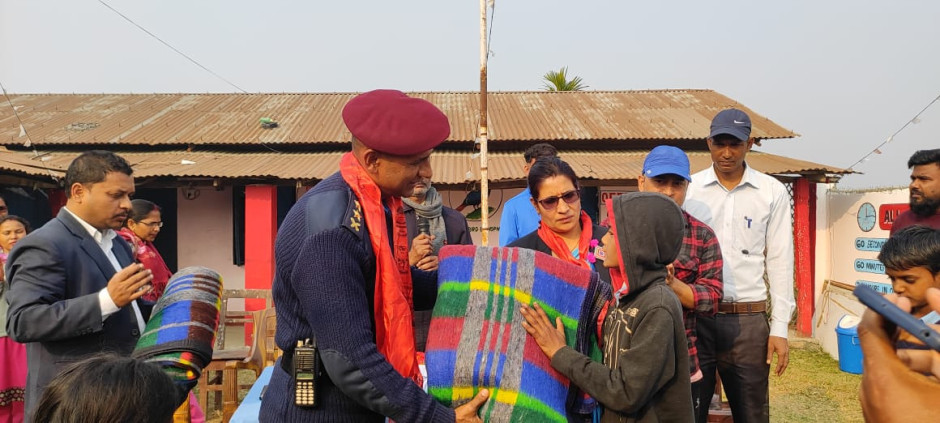 इनरुवा नगरपालिका वडा नं. ३ स्थित श्री देवकाेटा आधारभूत विद्यालयमा अध्ययनरत अति बिपन्न परिवारका छात्र, छात्रालाई चिसाेवाट जाेगिनकालागि प्रमुख जिल्ला अधिकारी तथा प्रहरी उपरिक्षकवाट कम्बल बितरण कार्यक्रम ।