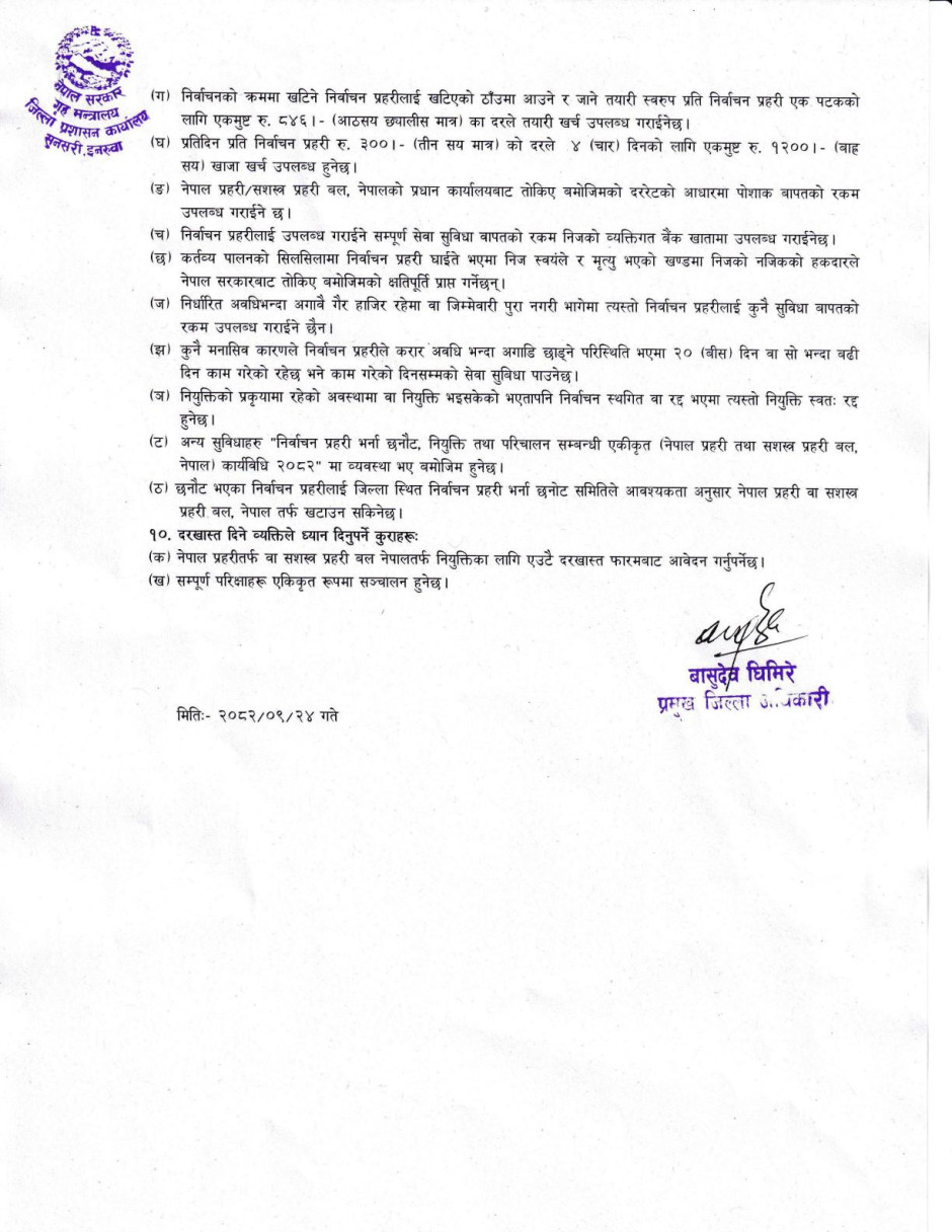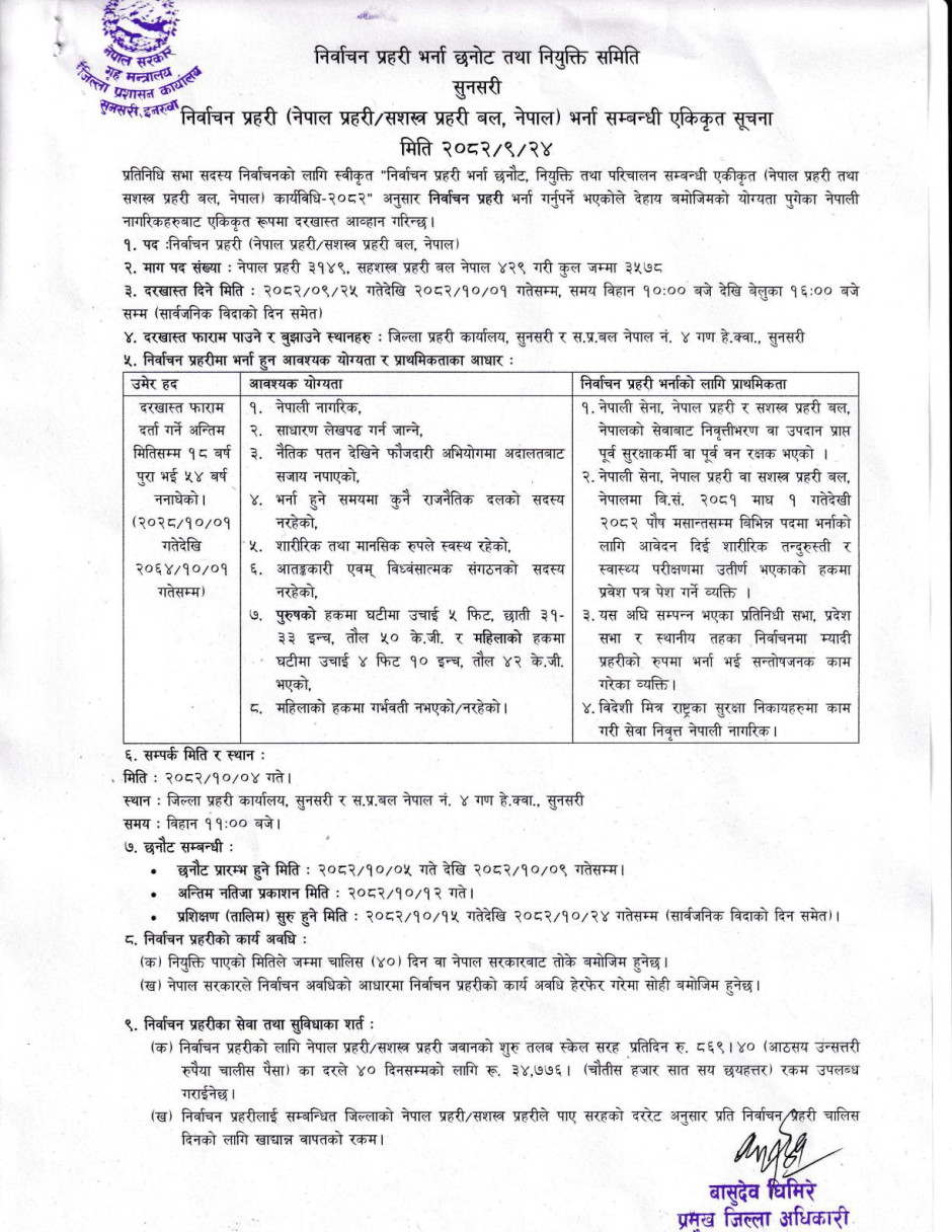 निर्वाचन प्रहरी (नेपाल प्रहरी/सशस्त्र प्रहरी बल, नेपाल) भर्ना सम्बन्धी एकिकृत सूचना।